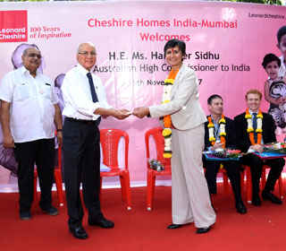 H.E. Ms. Harinder Sidhu, Australian High Commissioner to India Handing Over DAP Contribution Towards Installation of Solar Power System to Mr. P.M. John, Chairman, Cheshire Home